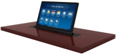 系统采用BS架构、支持远程Web登录管理,基于Windows系统研发的无纸化会议终端;采用17.3寸LG触控屏,支持1920×1080高清与IPS全视角显示,具备10点电容触控及背光调节功能;超薄触控高清屏与升降器采用一体式设计,无外露连接线、无连接背板、无外露螺丝,整体美观;整体轻便、重量为常规的1/3,面板厚度仅为3mm,宽度仅70mm,减少运输成本,对会义桌压力小;具备防夹伤保护功能,在上升过程中受到非正常外力阻碍时,系统会自动下降缓冲,避免夹伤及损坏设备;具备掉电/停止状态手动操控下降功能,当掉电/停止状态时, 可手动把升降屏幕降至最低位置;内置环通输出电源接口,可给升降终端手拉手供电,减少电源插座布线,工程现场布线更加整洁美观;支持两路HDMI和VGA信号输入,系统具备自动识别信号及通过面板按键手动切换选择功能。
